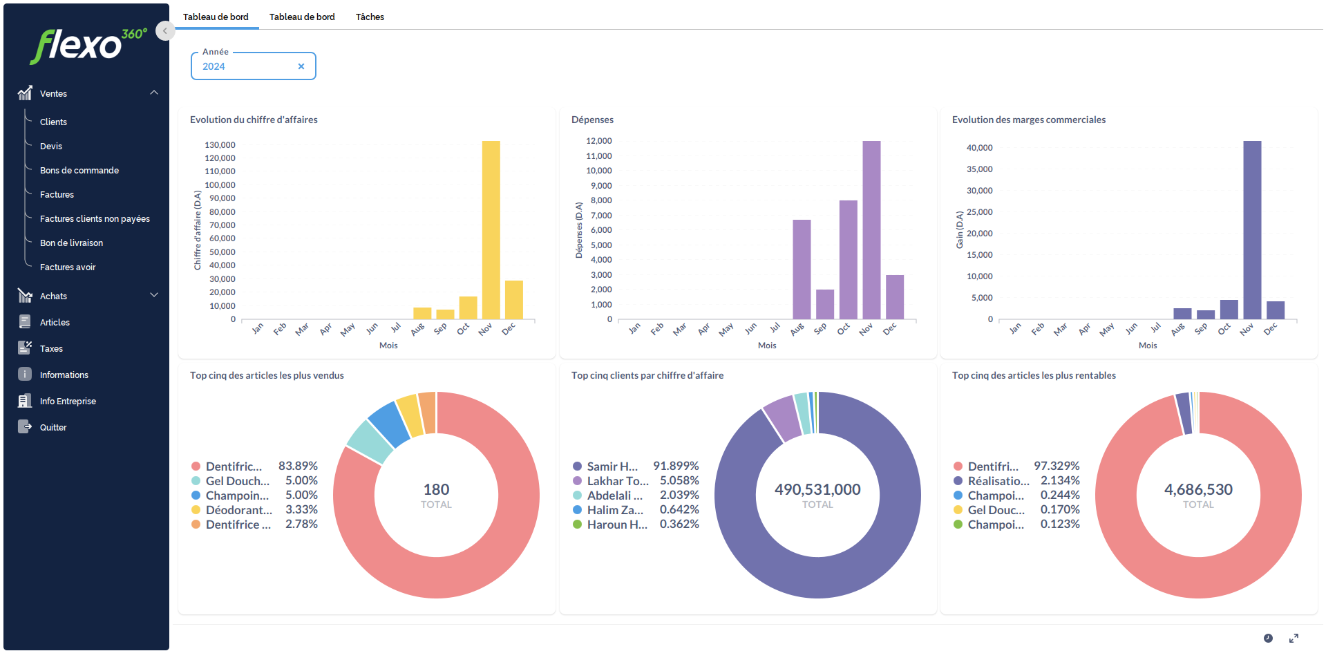 Flexo360 vous donne accès à tous vos outils de gestion :